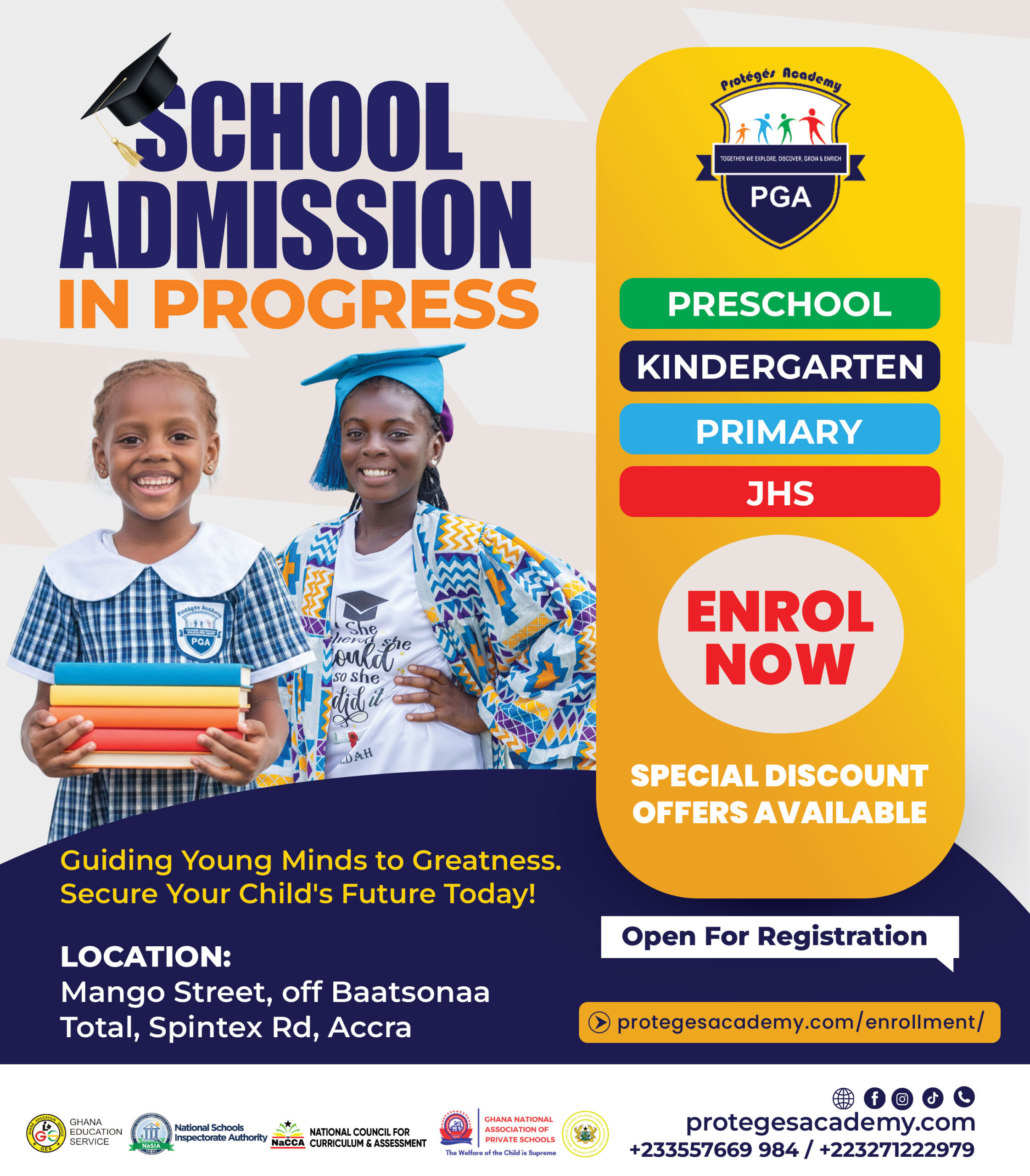 Admissions are open for creche, nursery, primary, and JHS. Children must be able to speak a little English to enable them to be tutored in English.